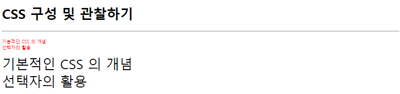 <h1>CSS ๊ตฌ์ฑ ๋ฐ ๊ด์ฐฐํ๊ธฐ</h1>