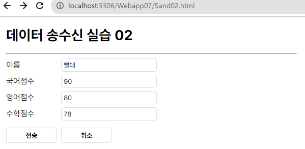 http://localhost:3306/WepApp07/Send02.htmlλ‘ νλ€.