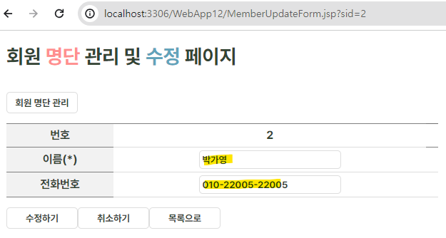 // ์ด์ ํ์ด์ง๋ก(MemberUpdateForm.jsp)๋ก ๋ถํฐ ๋์ด์จ ๋ฐ์ดํฐ ์์