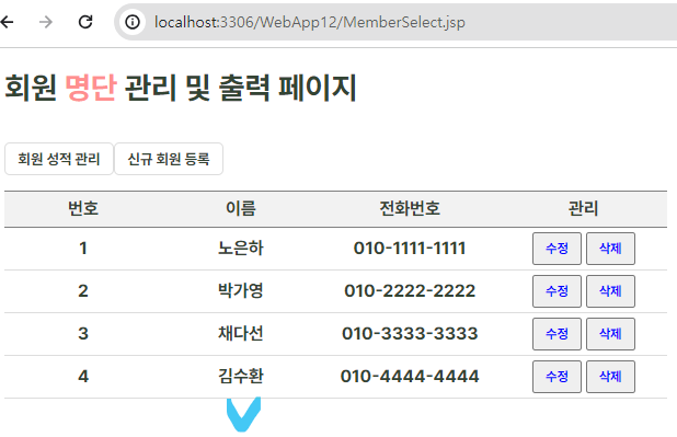 ใดใดMemberSelect.jsp_ํ์ ๋ช ๋จ ๊ด๋ฆฌ ๋ฐ ์ถ๋ ฅ ํ์ด์ง