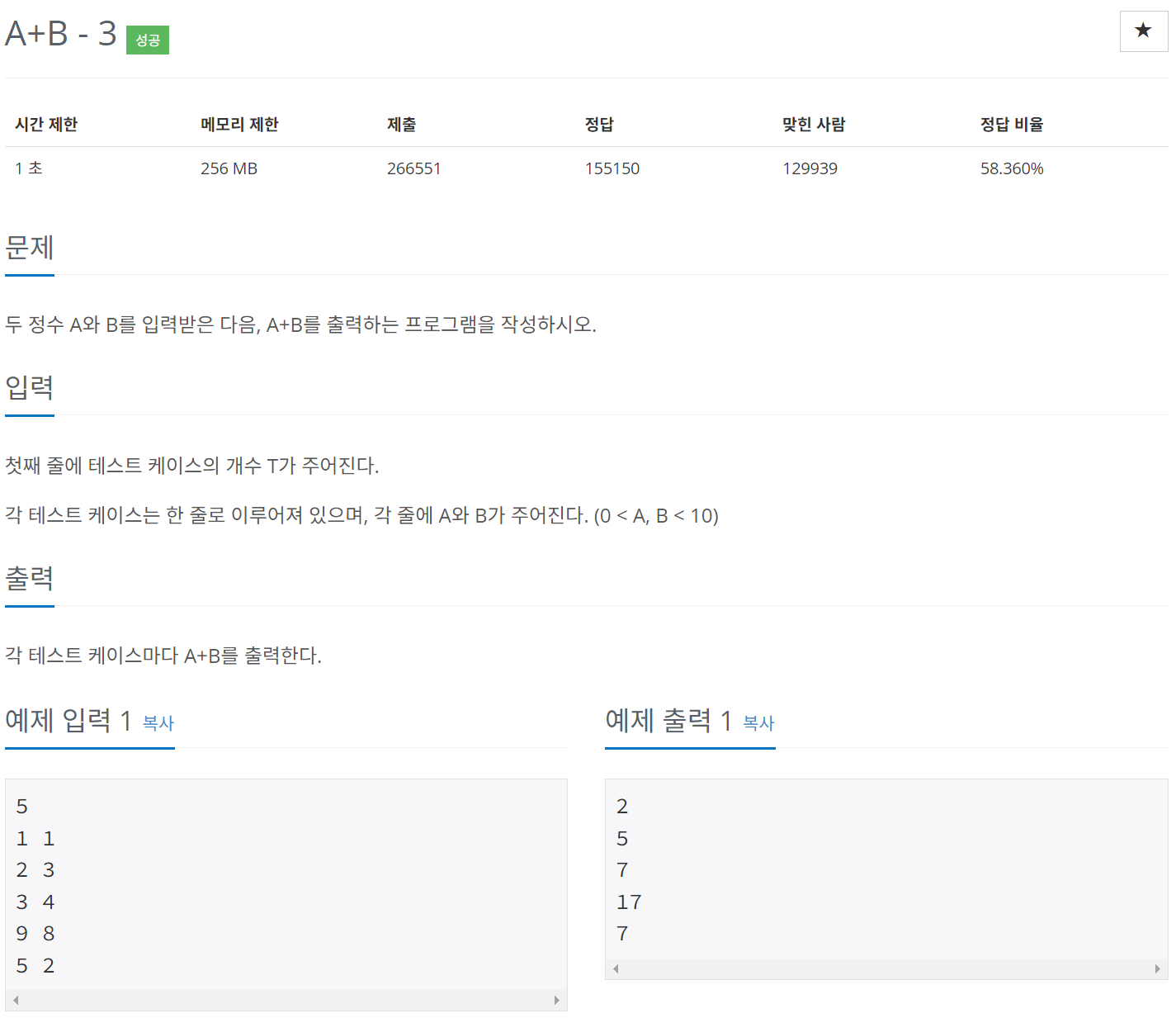 //[백준 Java] 10950: A+B - 3 >> 3